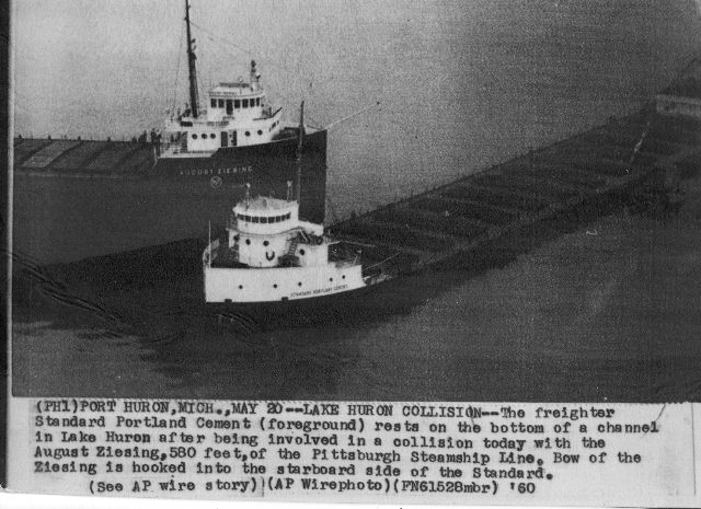 Came across this AP Wirephoto of the Standard Portland Cement and the August Ziesing ater a collision supposedly on Lake Huron on the 20th of May 1960.