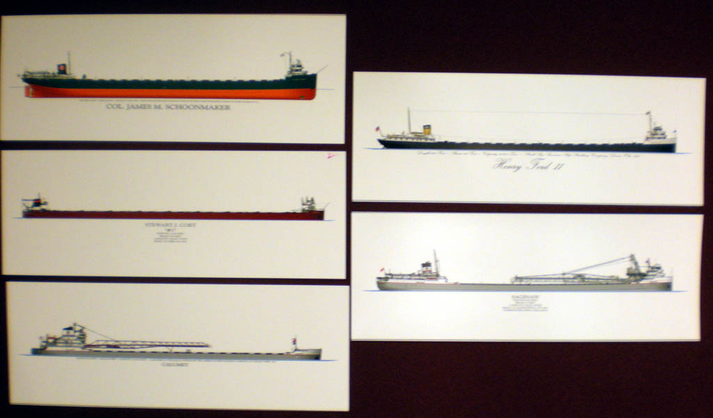Sold - Collection of five (5) 11" x 4" ship profile prints suitable for framing. The ships are: