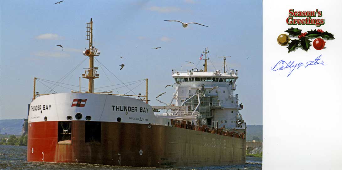 A tradition among boat watchers is to take your best photograph of the season and send the picture featured on a holiday greeting card. Here we see a selection of cards sent into this web site.